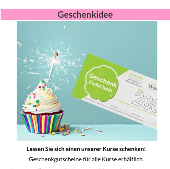 Zum Bestellen einfach Kurs auswählen und statt Kursnummer “Geschenkgutschein” eingeben. Lieferung per Post gegen Rechnung.